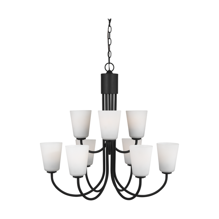 Miles Large Chandelier in Midnight Black with Etched Glass / White Inside Bulb(s) Not Included