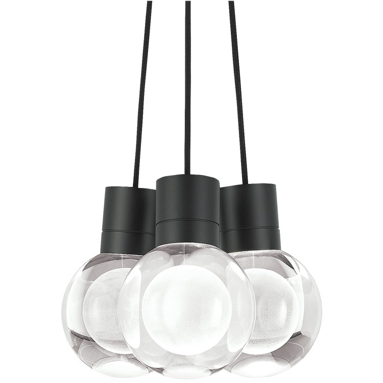 Mina 3-Light Chandelier in Black with Black Cord 3000-2200K