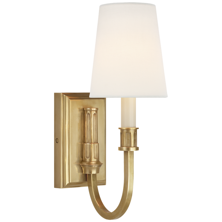 Modern Library Sconce in Hand-Rubbed Antique Brass with Linen Shade Open Box