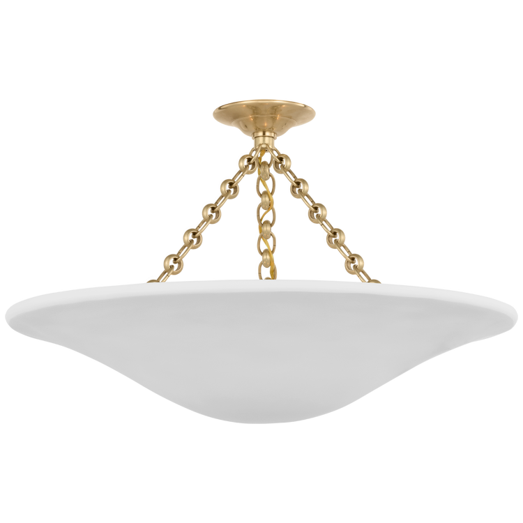 Mollino 24" Semi-Flush Mount in Hand-Rubbed Antique Brass with Plaster White Shade