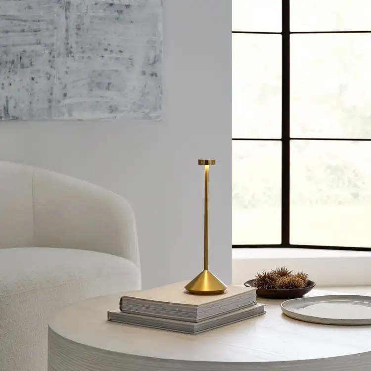 Moneta Accent Rechargeable Table Lamp Natural Brass 2700K 90 CRI wall charger included