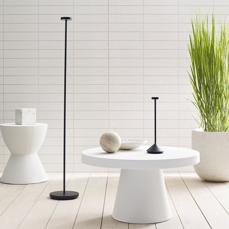 The Moneta Short Rechargeable Floor Lamp by Sean Lavin exudes elegance and simplicity. This lamp perfectly fuses functionality and aesthetics and is designed to blend into any modern setting seamlessly. Crafted with precision and innovation, this lamp boasts adjustable brightness levels to suit your mood and environment. From soft, ambient glow to bright, focused beams, easily customize your lighting experience with a simple touch. Available in modern finishes. It is designed with an integrated 3-step touch dimmer conveniently designed to achieve your desired ambiance. A USB C to C cable allows Moneta to recharge within 5 hours with a maximum battery life of 12-14 hours. Wall charger included.