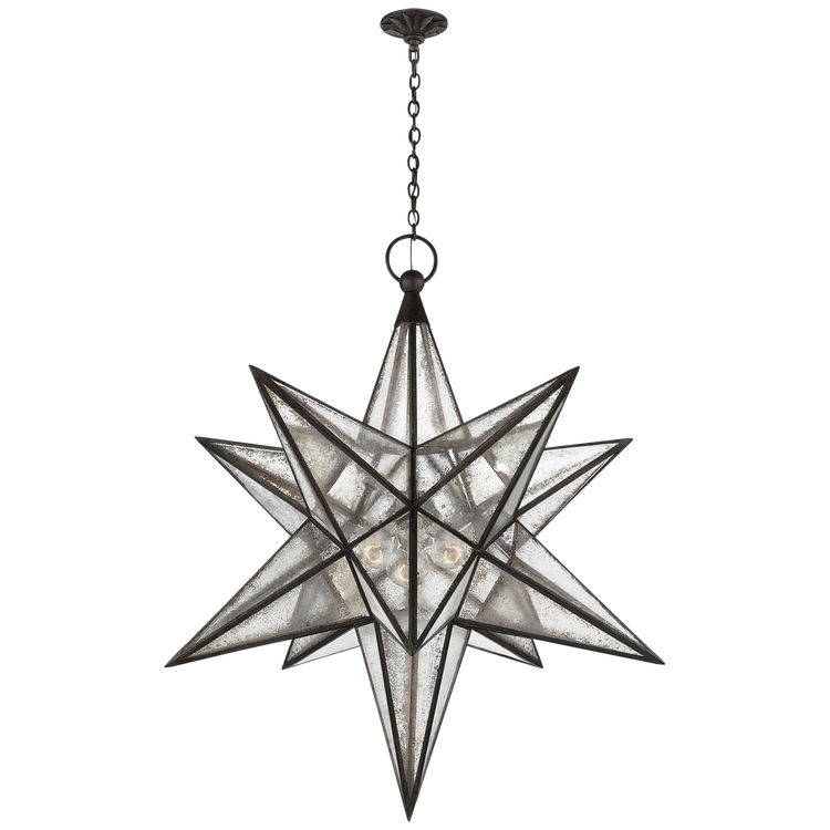 Moravian XL Star Lantern in Aged Iron with Antique Mirror Open Box