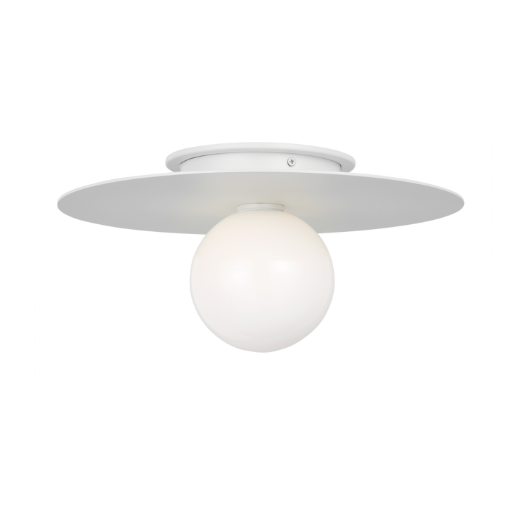 Nodes task, ceiling and wall lighting is minimal yet bold, highlighting Kelly's distinctive juxtaposition of mixed-materiality and curvilinear form. Light radiates from milk glass globes set against metal discs. All fixtures can be used or without the discs. The cast canopy is available in Burnished Brass or Midnight Black. Hanging fixtures within this family feature black fabric cords, while pivot sconces can be cord and plug or hard wire.