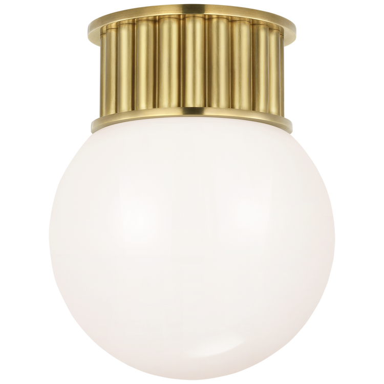 Nolan 9" Flush Mount in Antique-Burnished Brass with White Glass Globe