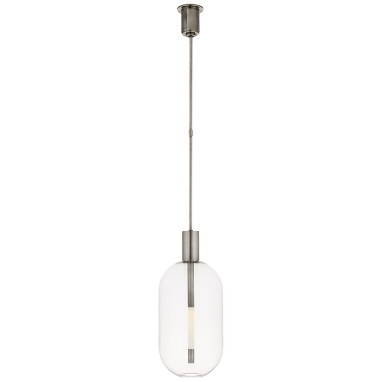 A modern take on classic minimalist lighting, the Kelly Wearstler Nye series showcases the relationship between artisanal-blown clear glass and innovative LED technology with sleek cylindrical metal accents. Featuring clean sculptural lines and harmonious proportions, the globe pendant will lend an elegant touch to interior spaces.