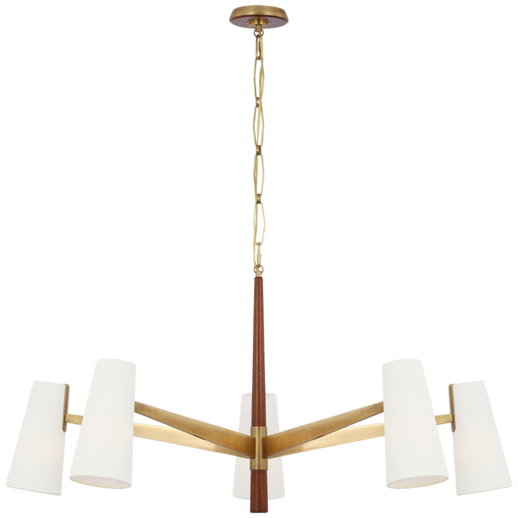Olina 44" Chandelier in Hand-Rubbed Antique Brass and Mahogany with Linen Shades