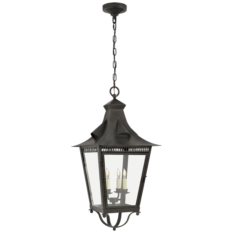 Orleans Large Hanging Lantern in French Rust with Clear Glass Open Box