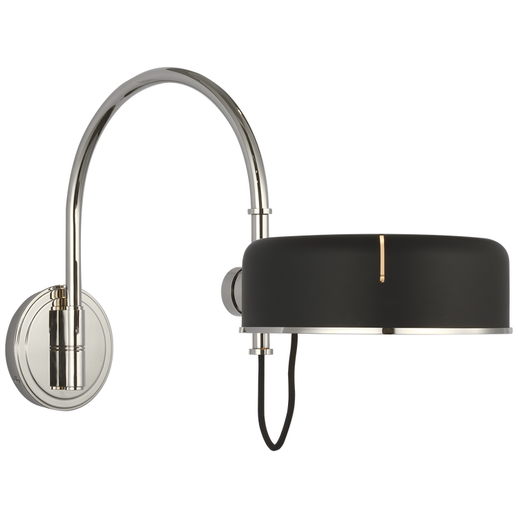 Oso 13" Articulating Arc Wall Light in Polished Nickel with Matte Black Shade