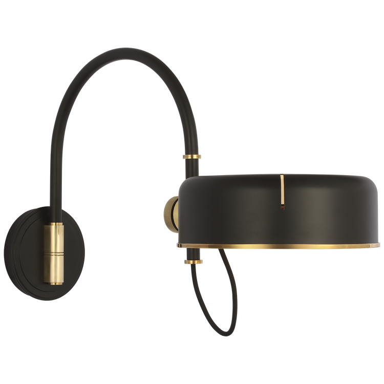 Oso 13" Articulating Arc Wall Light in Modern Iron and Hand-Rubbed Antique Brass with Modern Iron Shade