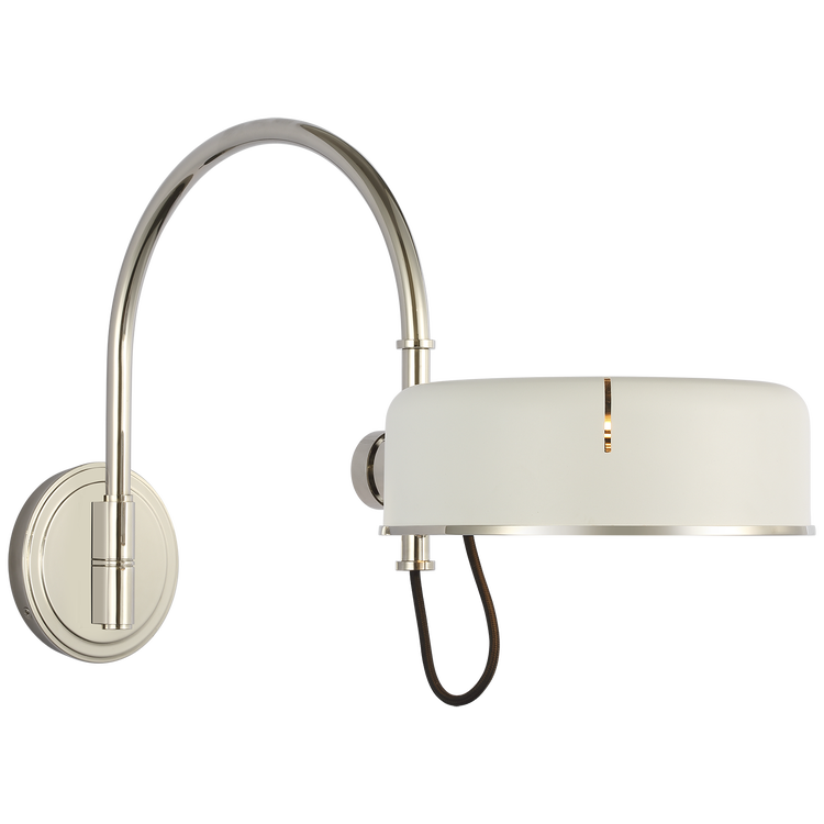 Oso 13" Articulating Arc Wall Light in Polished Nickel with Matte White Shade