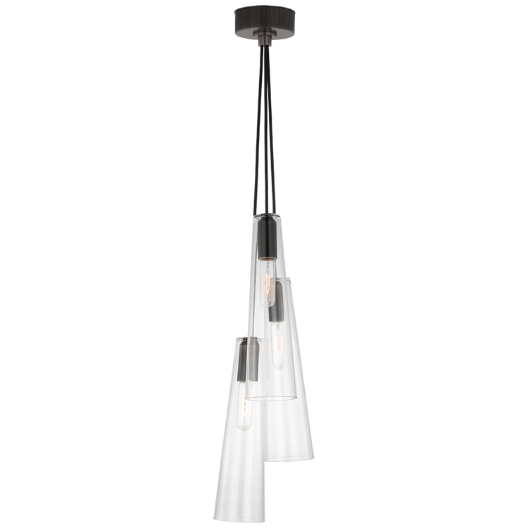 Osvaldo 4" Triple Pendant in Bronze with Clear Glass
