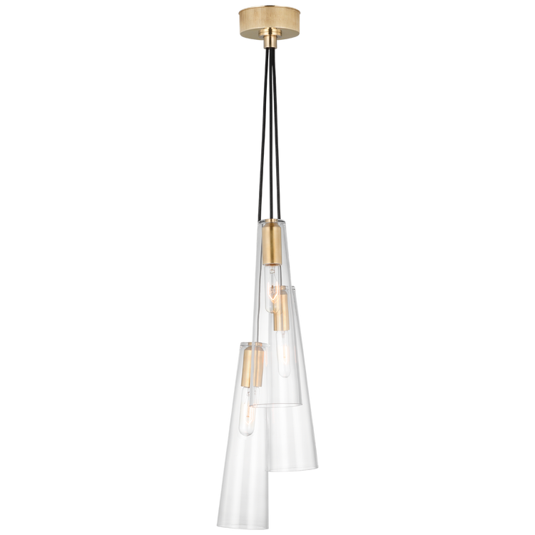 Osvaldo 4" Triple Pendant in Antique-Burnished Brass with Clear Glass
