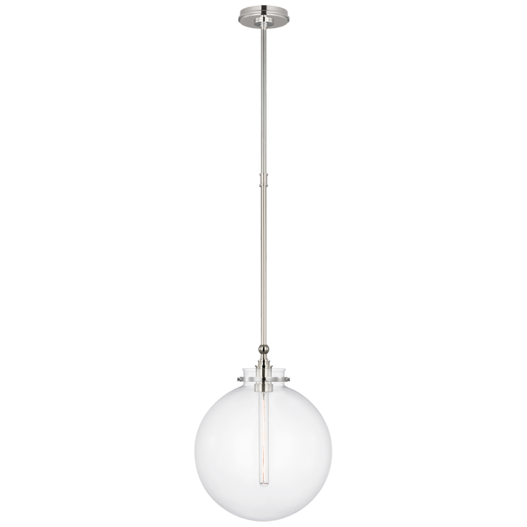 Parkington 14" Globe Pendant in Polished Nickel with Clear Glass