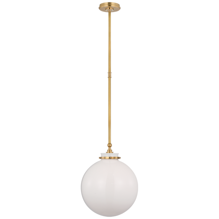 Parkington 14" Globe Pendant in Antique-Burnished Brass with White Glass
