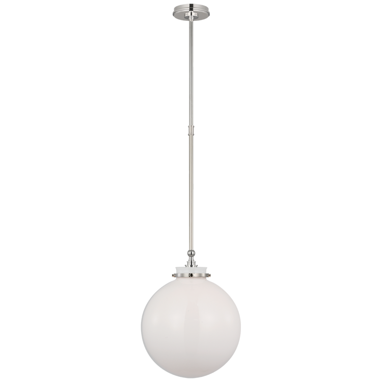 Parkington 14" Globe Pendant in Polished Nickel with White Glass