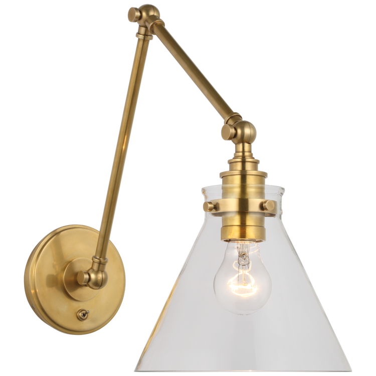Parkington Double Library Wall Light in Antique-Burnished Brass with Clear Glass Open Box