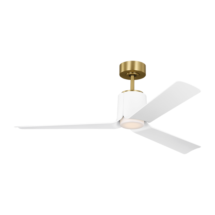 Peel Smart 52 LED Ceiling Fan in with Matte White Blades and Light Kit Burnished Brass