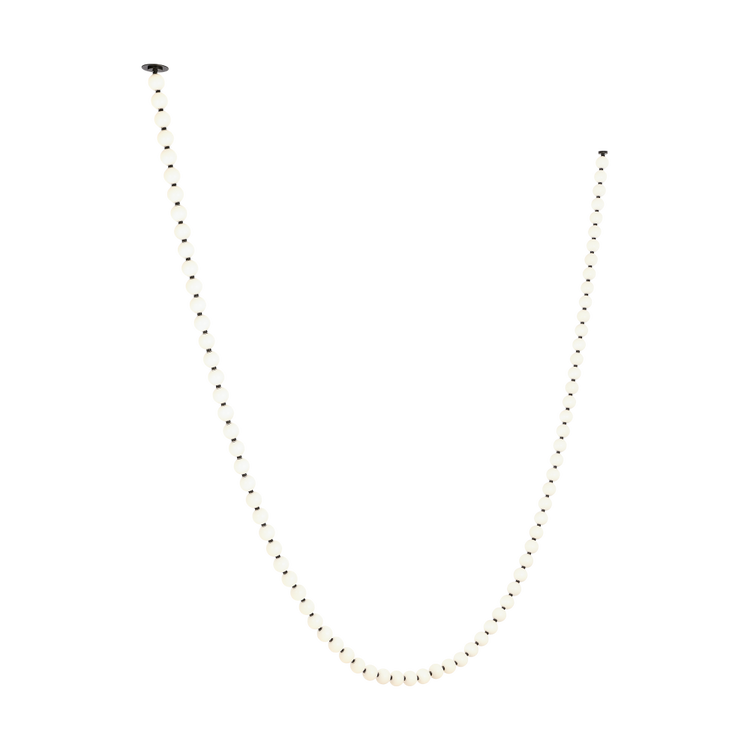 The Perle by Sean Lavin is a stunning extension to the popular Collier Series, now offered in soft white glass to provide a different design presence in a room. Available in multiple-length strands for the ultimate customization. Perle can be hung straight down in pendant form or draped from two mounting points for a striking chandelier utilizing the surface canopy or more minimal remote driver canopy. Interweave individual stands to create incredible light sculptures with stunning illumination. The natural brass connectors are custom engineered to support the glass and add additional beauty to the piece. Available with remote or surface-mounted driver options. Predetermined length options allow easy ordering with virtually unlimited versatility. Contact the factory for custom configurations. Patent pending.