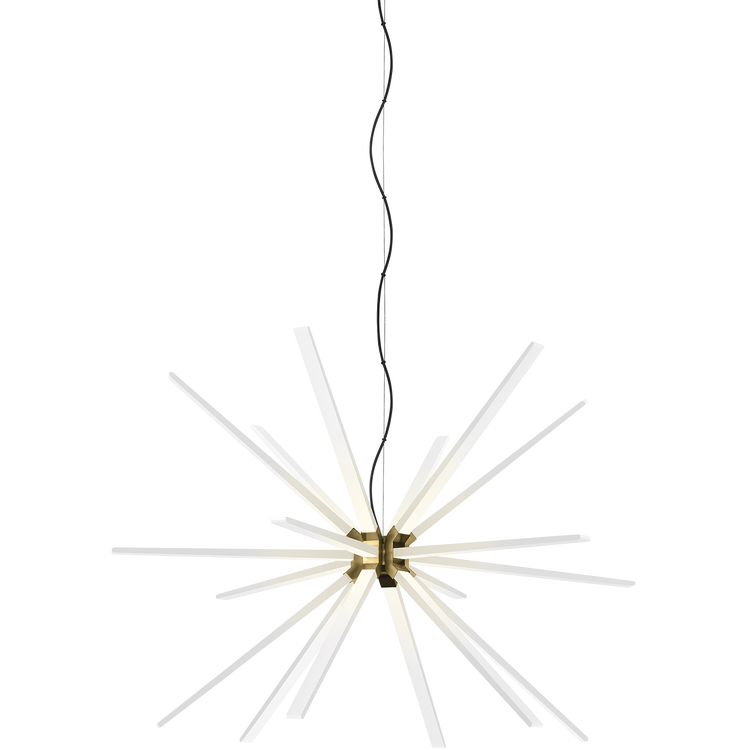 This quintessential starburst silhouette of the Photon suspension fixture by VC Modern is fun and playful while still being tailored and elegant. It can sparkle as the crowning jewel of an ultra-modern decor. Or just as successfully, it can be a dramatic statement piece in contrast to a more classic or eclectic setting. Perfect for living room lighting, dining room lighting or as an entryway light, the solid acrylic arms are squarely facetted to ensure they glow from the integrated LED light source shining from the core. Damp-rated and dimmable.