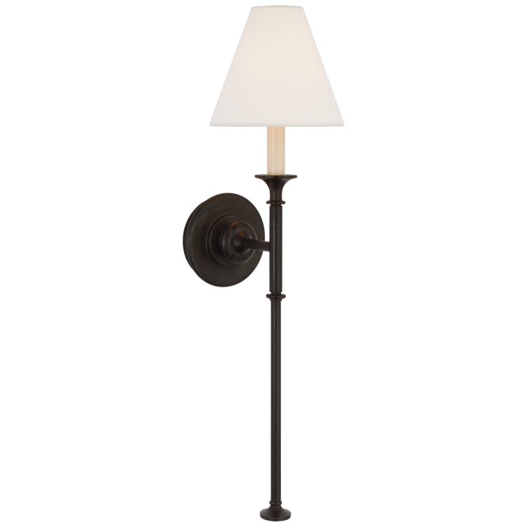 Piaf Large Tail Sconce in Aged Iron with Linen Shade Open Box