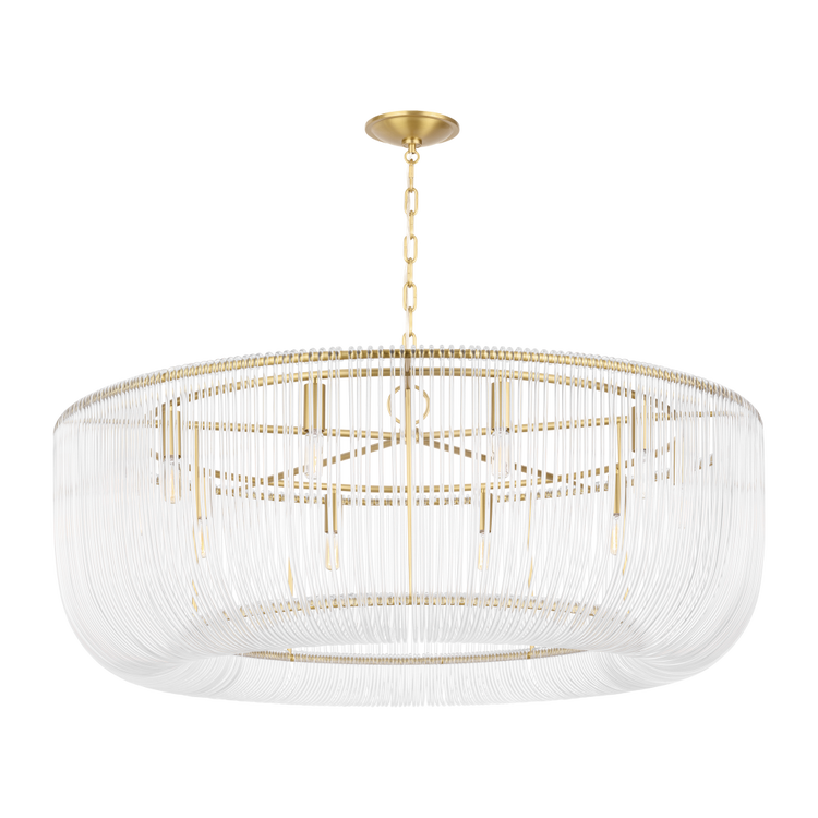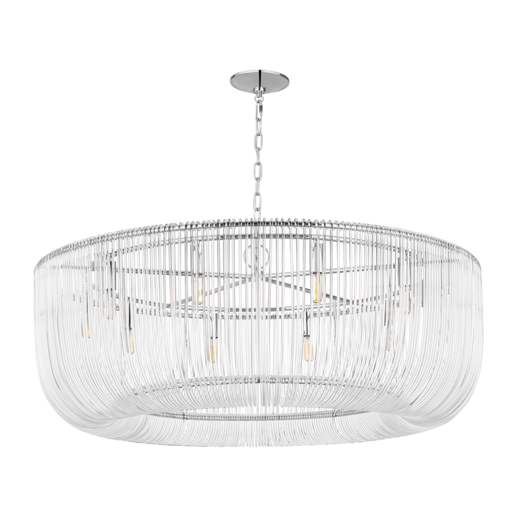 Inspired by traditional crystal basket chandeliers, the Pierce series by Chapman & Meyers updates the classic look with individually bent acrylic rods. Each rod is carefully looped at the ends to hook onto the metal frame creating minimal details, while the interior candelabra bulbs emit and refract light through the bent acrylic. The Pierce chandelier will lend an elegant and scintillating touch to living and dining rooms, bedrooms, hallways and entryways.