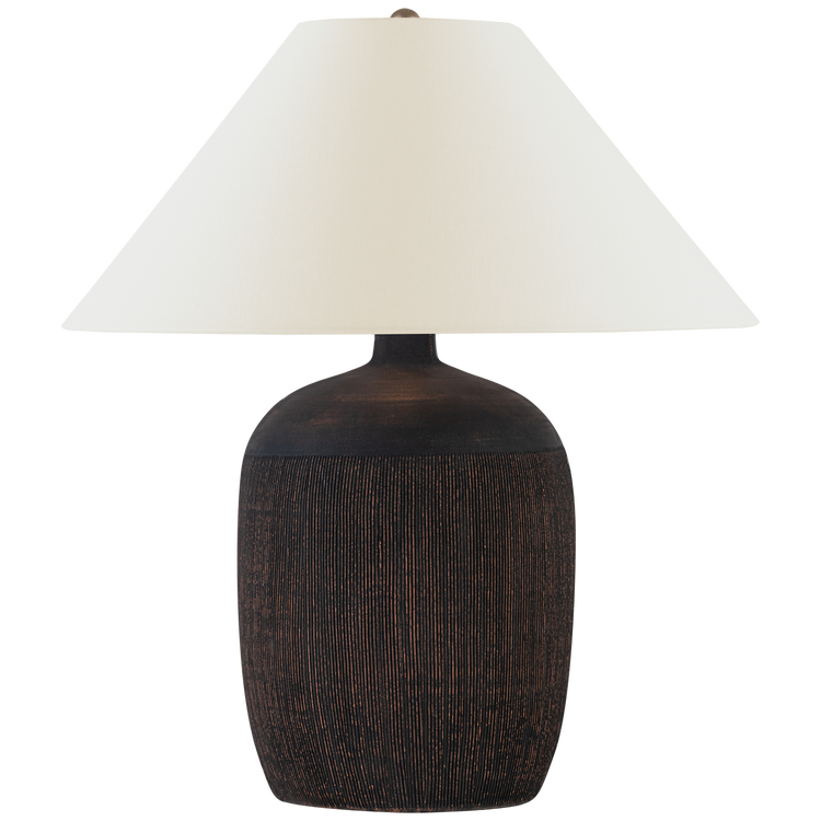 Portis 32" Combed Round Table Lamp in Black Wash Terracotta with Linen Shade