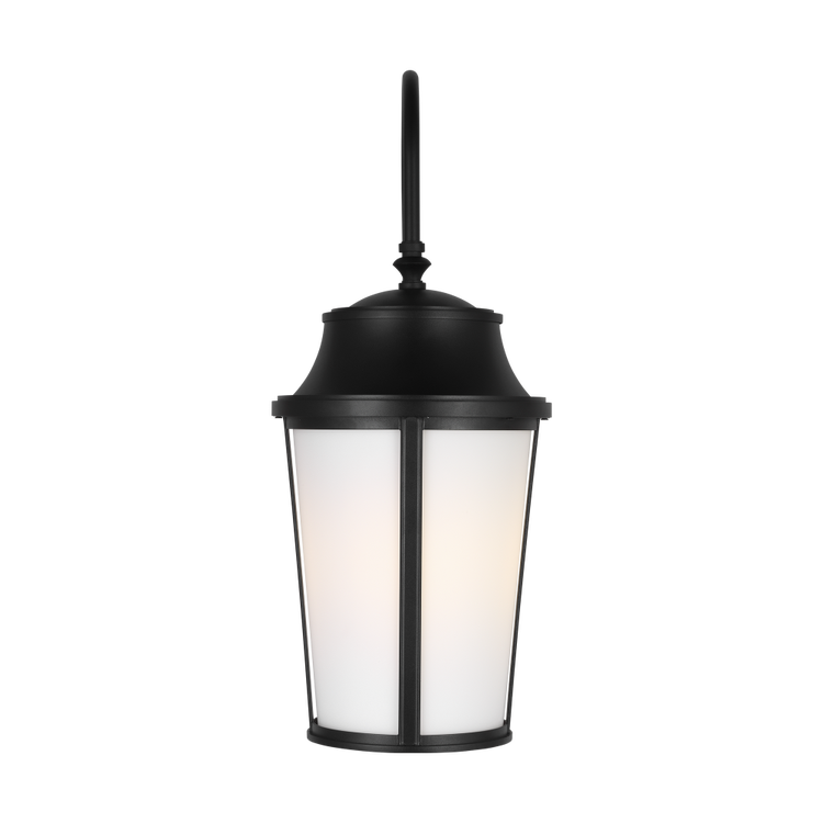 The Portola Large Arm Lantern refines the traditional lantern with softened contours and a graceful gooseneck arm. Etched white glass panels diffuse the light for a calm, ambient glow, while bold framing in a Textured Black finish provides structure and contrast. The curved arm introduces a distinctive silhouette that complements a range of architectural styles?from classic to transitional. Wet-rated for exterior use, the series brings quiet elegance to porches, entryways, and outdoor living spaces.