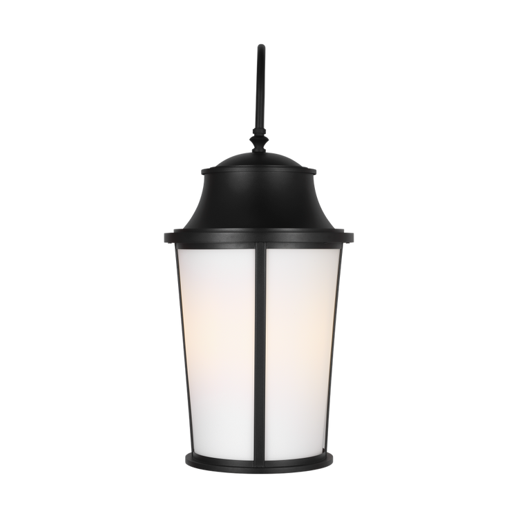 The Portola Extra Large Arm Lantern refines the traditional lantern with softened contours and a graceful gooseneck arm. Etched white glass panels diffuse the light for a calm, ambient glow, while bold framing in a Textured Black finish provides structure and contrast. The curved arm introduces a distinctive silhouette that complements a range of architectural styles?from classic to transitional. Wet-rated for exterior use, the series brings quiet elegance to porches, entryways, and outdoor living spaces.