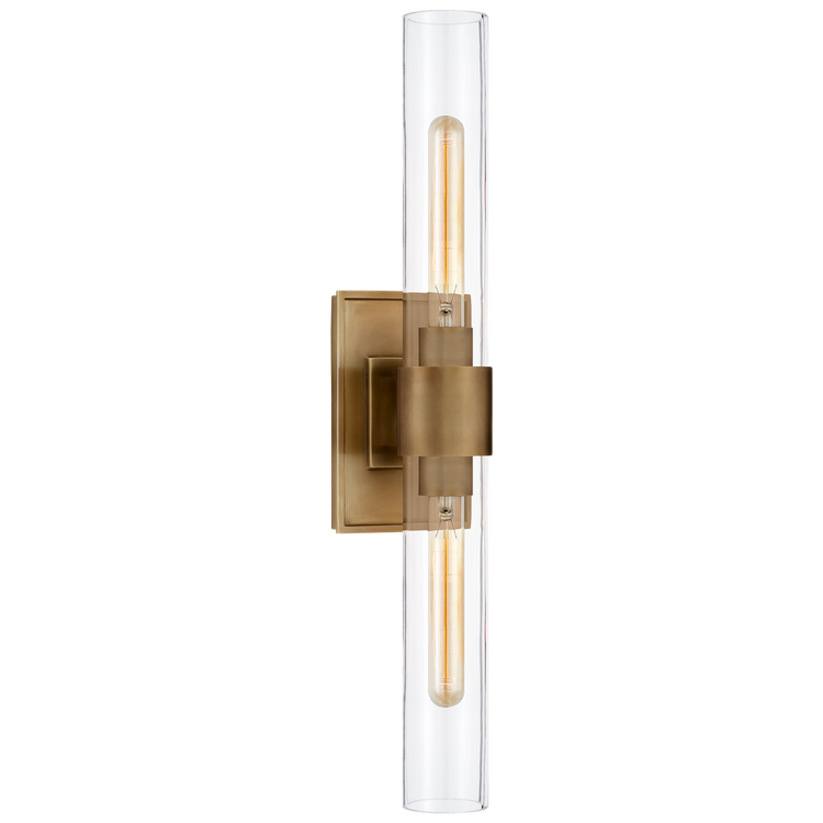 Presidio Petite Double Sconce in Hand-Rubbed Antique Brass with Clear Glass Open Box
