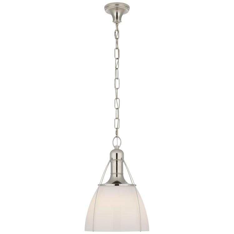 Prestwick 14" Pendant in Polished Nickel with White Glass Open Box
