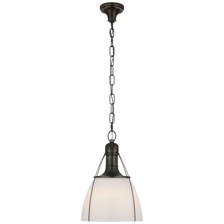 Prestwick 14" Pendant in Bronze with White Glass Open Box