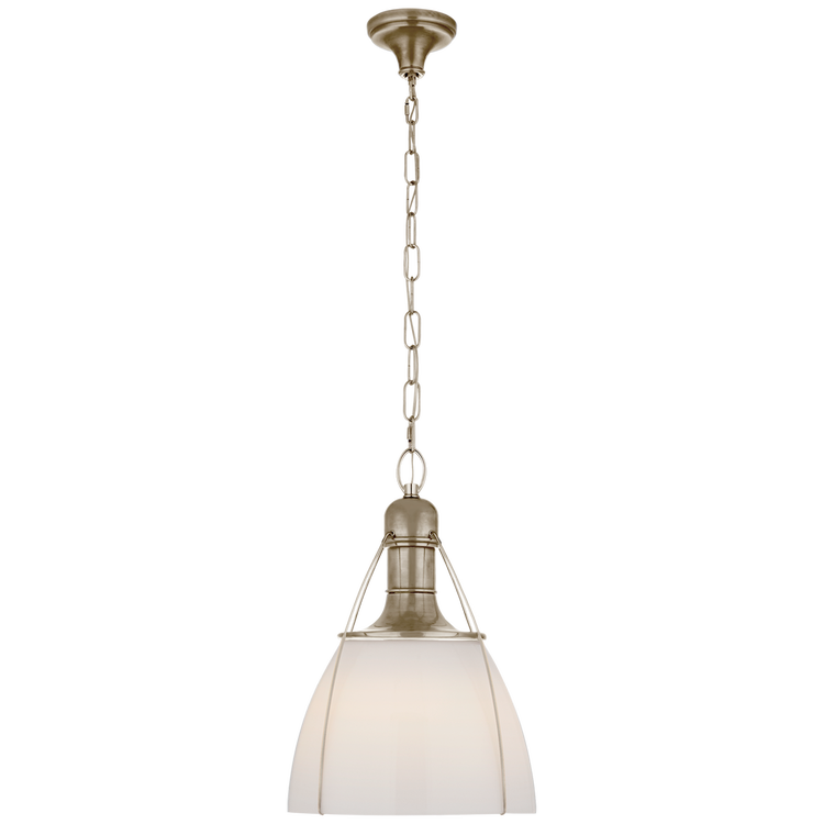 Prestwick 18" Pendant in Antique Nickel with White Glass Open Box