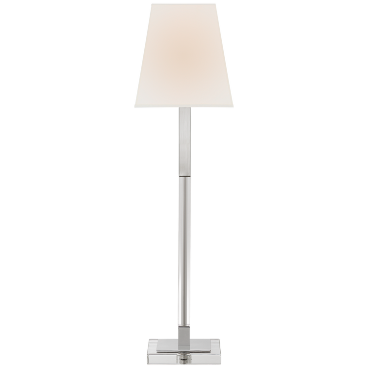 Reagan Buffet Lamp in Polished Nickel and Crystal with Linen Shade Open Box