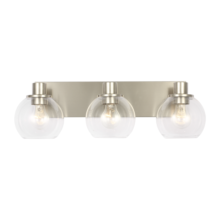The Rito Large Bath reinterprets the classic globe light with modern precision. A clear, rounded shade is anchored by a clean metal fitting and mounted to a square backplate, offering a familiar form with updated geometry. Rito’s simple silhouette and clear glass construction make it adaptable across bathrooms, powder rooms, and transitional spaces.