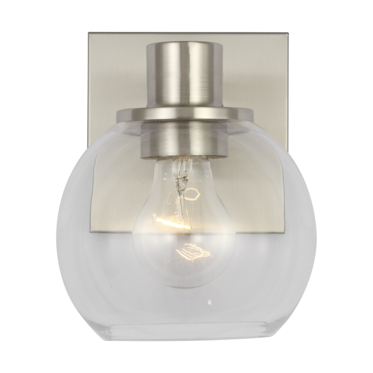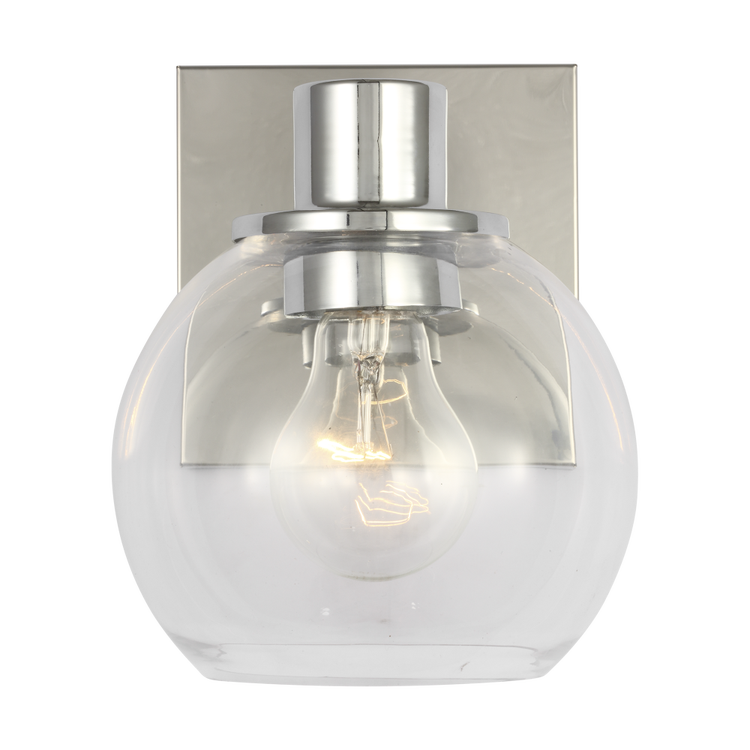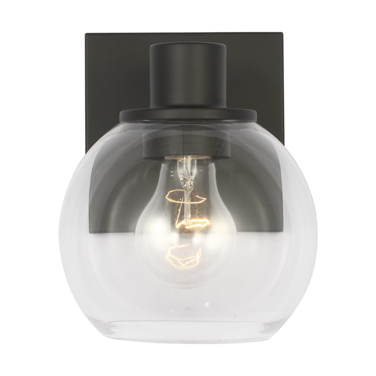 A reinterpretation of the classic globe, the Rito Small Bath features a clear globe shade mounted on a square backplate. The clean symmetry and open glass diffusers create even, ambient illumination. Suitable for powder rooms or smaller vanities, the fixture can be mounted up or down to suit ceiling height and lighting needs