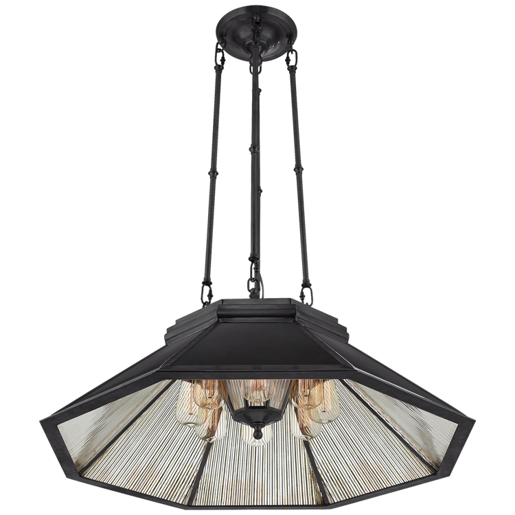 Rivington Medium Eight-Paneled Chandelier in Bronze with Antiqued Ribbed Mirror Open Box