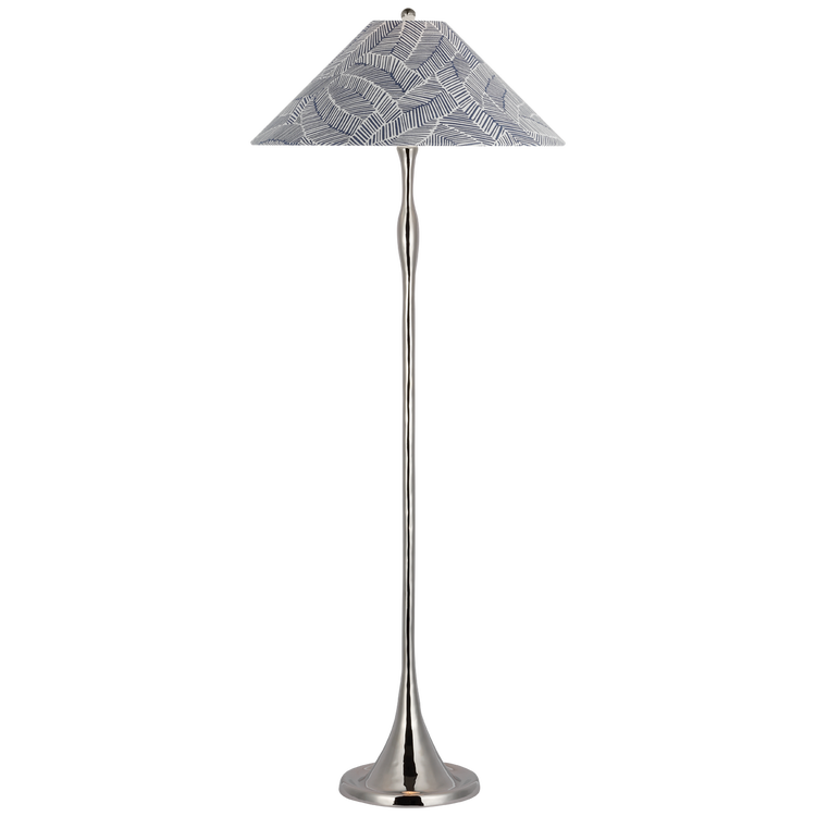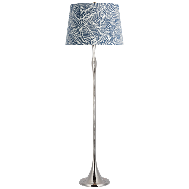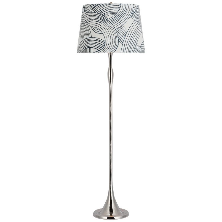 Romero Medium Floor Lamp in Polished Nickel with Schumacher 21" Blue Charee Stripe Flare Shade