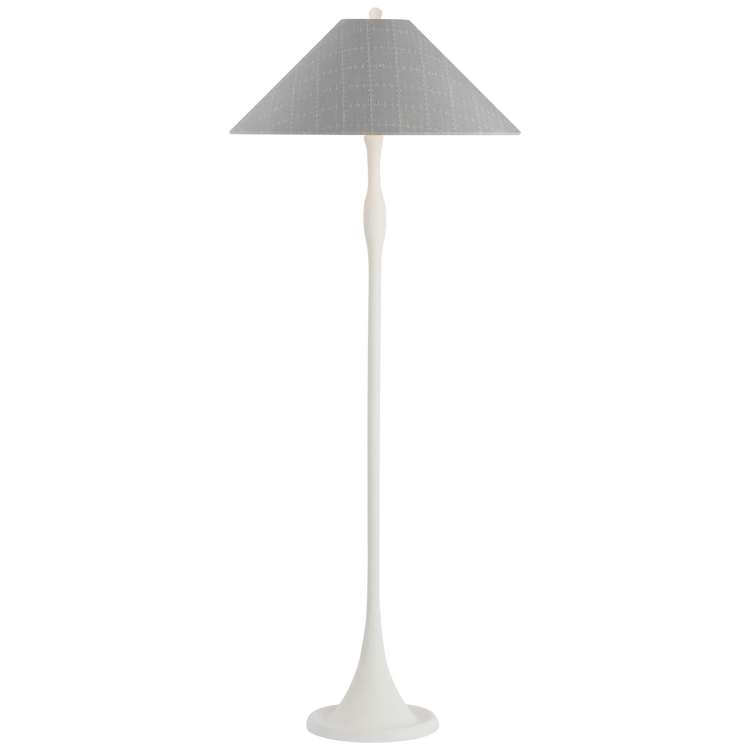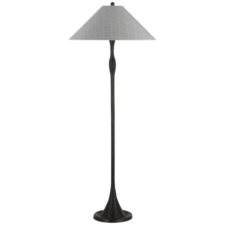 Romero Medium Floor Lamp in Bronze with Schumacher 21" Sky Elin Check Flare Shade