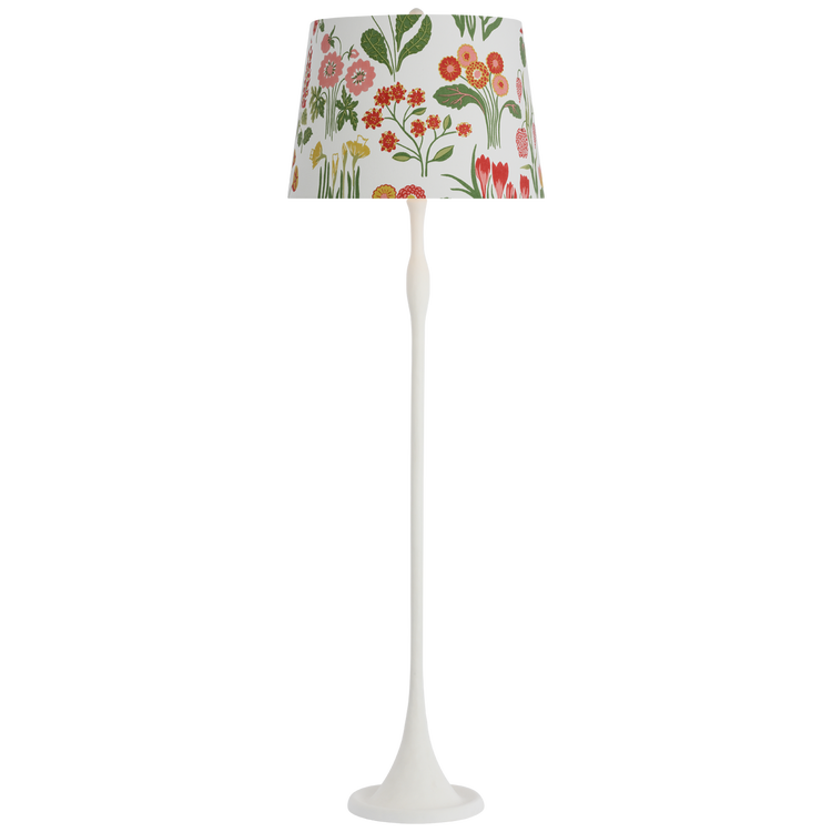 Romero Medium Floor Lamp in Bronze with Schumacher 21" Taupe Abstract Leaf Flare Shade