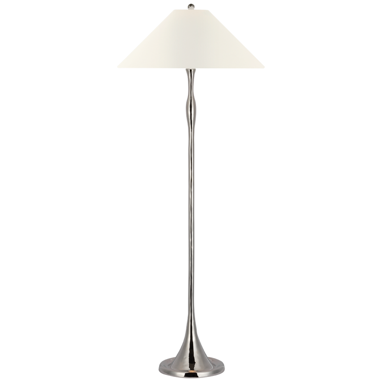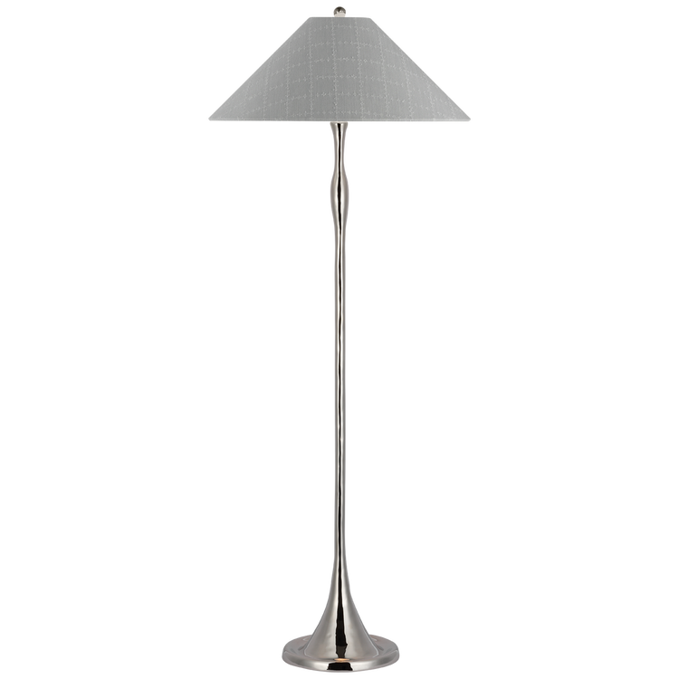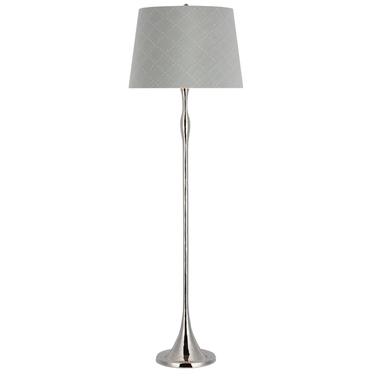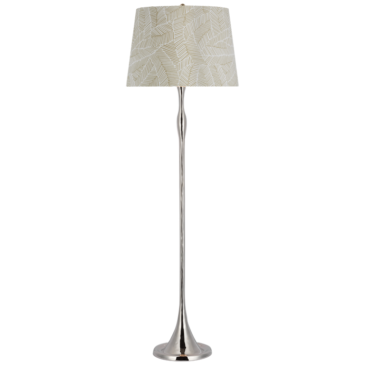 Romero Medium Floor Lamp in Polished Nickel with Schumacher 18" Taupe Abstract Leaf Empire Shade