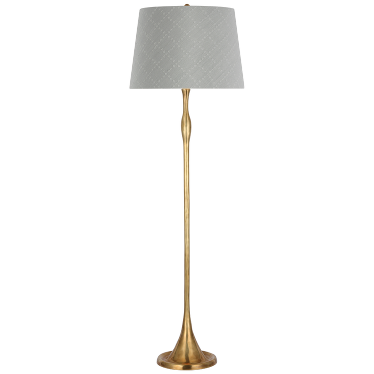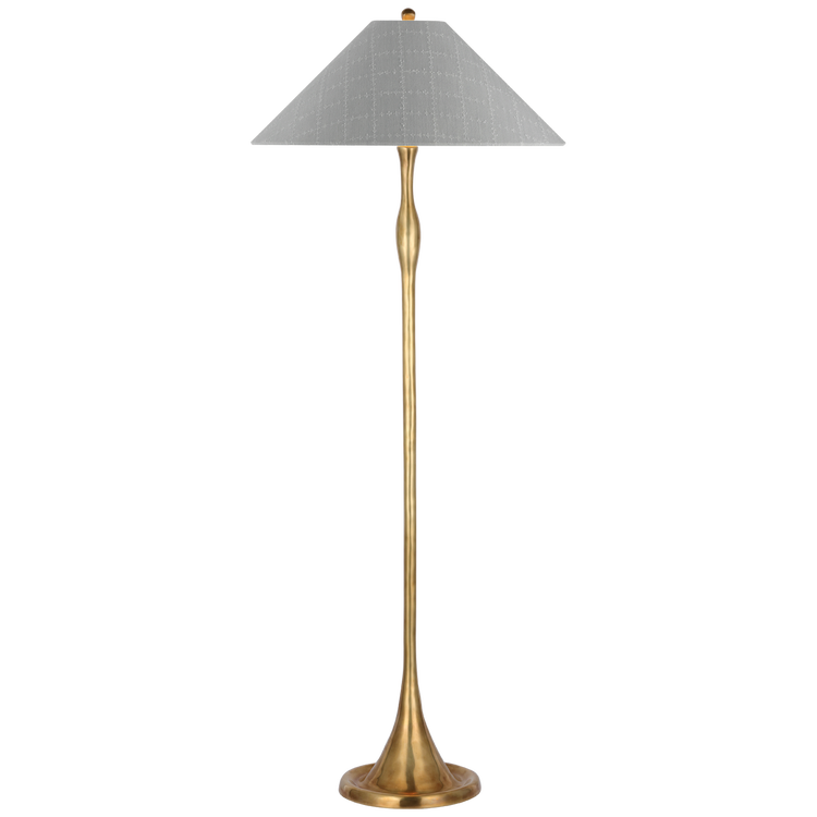 Romero Medium Floor Lamp in Hand-Rubbed Antique Brass with Schumacher 21" Sky Elin Check Flare Shade