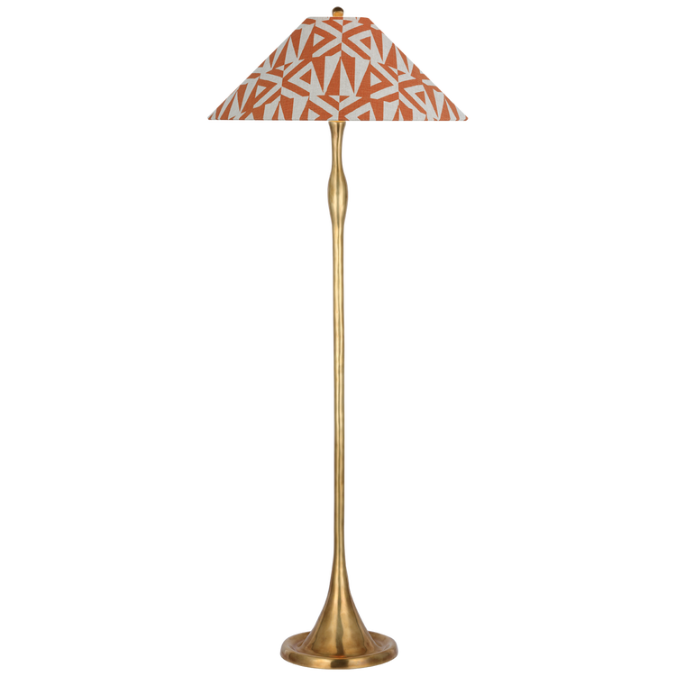Romero Medium Floor Lamp in Hand-Rubbed Antique Brass with Schumacher 21" Brick Amero Flare Shade
