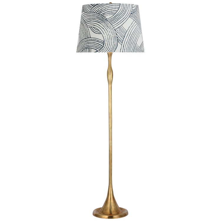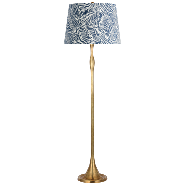 Romero Medium Floor Lamp in Hand-Rubbed Antique Brass with Schumacher 18" Blue Freeform Empire Shade