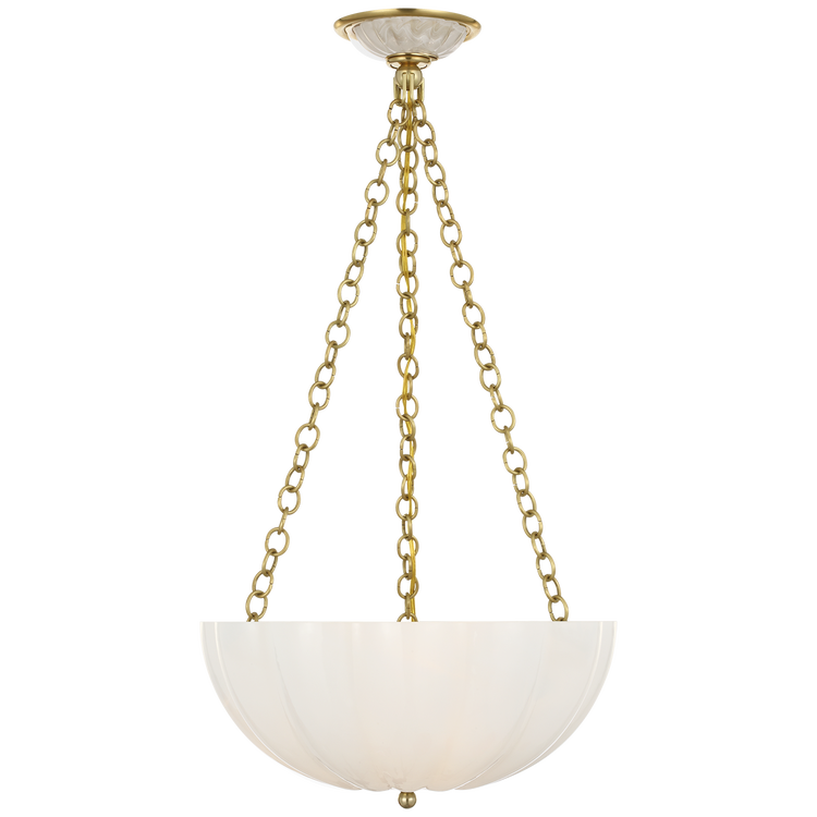 Rosehill 16" Bowl Chandelier in Hand-Rubbed Antique Brass with White Strie Glass