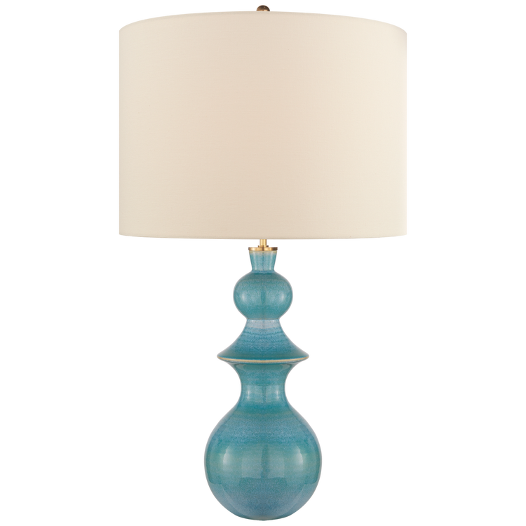 Saxon Large Table Lamp in Sandy Turquoise with Cream Linen Shade Open Box