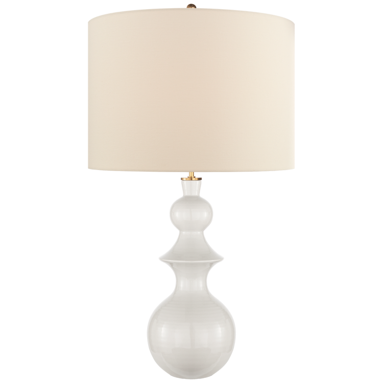 Saxon Large Table Lamp in New White with Cream Linen Shade Open Box