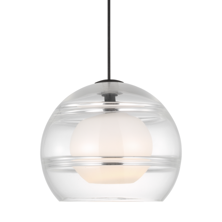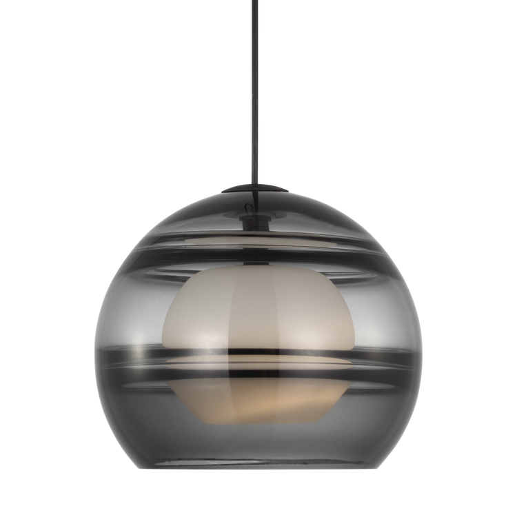 The large scale of the Sedona pendant light from Sean Lavin creates dramatic statement, particularly when installed with other varying sizes within the collection. While each transparent clear and transparent smoke glass orb is perfectly spherical and smooth on the exterior surface, the interior surface features gradually thickening bands of glass which are artfully crafted by talented artisans to add alluring visual interest to your space. Two, fully dimmable vintage tubular style LED lamping options are not only energy efficient, but also allow you to customize these pendant lights to your desired ambiance.