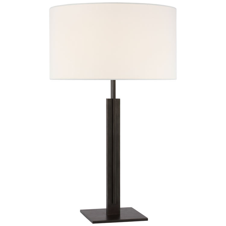 Serre Large Table Lamp in Aged Iron with Linen Shade Open Box