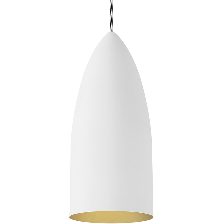 Inspired by vintage automobile styling of the 1940s, spun metal shades with rubberized paint create a flawlessly smooth look that also offers an unexpected metallic texture and color when viewed from below. Choose from outer-finish options as well as metallic-colored inner finish options. At a 6.1 in. diameter, Signal Pendants can be installed on their own, lined up in multiples or combined with the larger size available at 17 in. diameter.